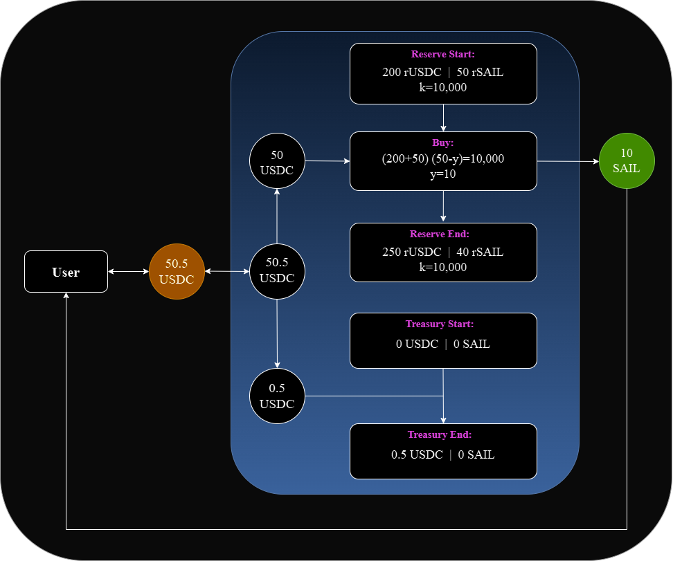 2. **User Purchase Attempt**: A user decides to buy SAIL with **50.5 USDC**.