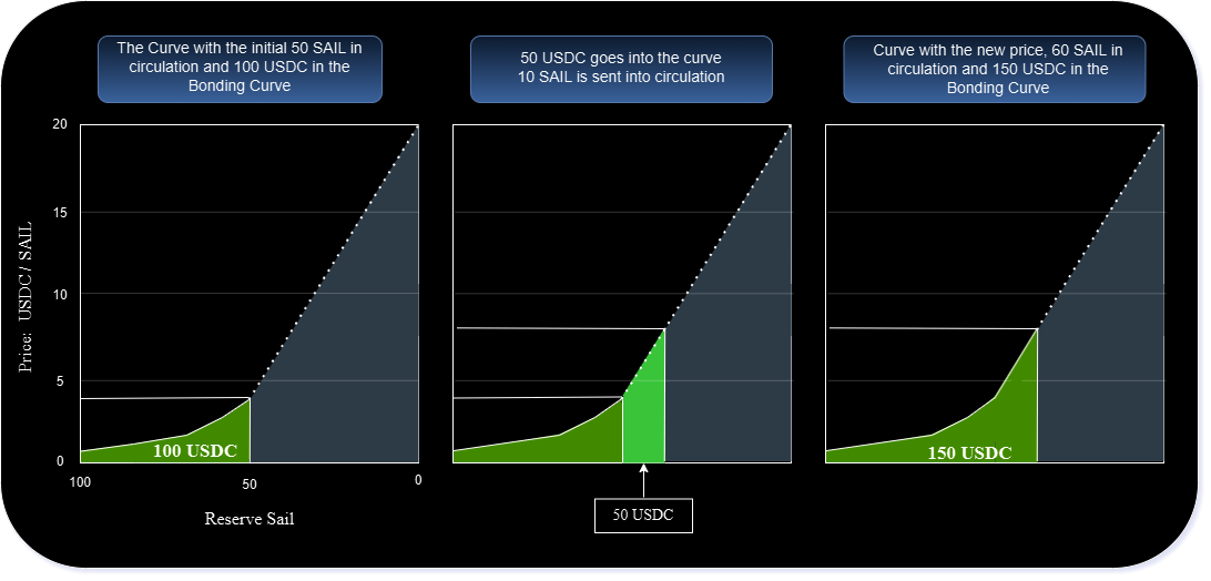 <figure><img src="https://198229502-files.gitbook.io/~/files/v0/b/gitbook-x-prod.appspot.com/o/spaces%2Fi9vbjZSWtXcZaBayytwv%2Fuploads%2FoqpdhUmQu36kKKg2ZP8K%2FCurveChart.drawio.png?alt=media&#x26;token=488a645b-eead-47e4-9759-22d1d63fc451" alt=""><figcaption><p>SAIL Bonding Curve Buy Example Fig 2</p></figcaption></figure>